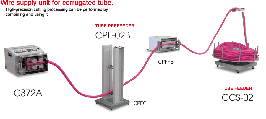 Inner guide pipe has realized the parallel process of cut and slit for corrugated tube. Bisides, with the option parts, it enables the parallel process of cut and slit for PVC tube, too.
