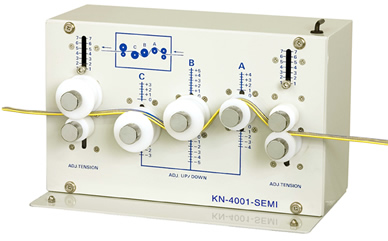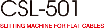 CSL-501, which has been developed as a special optional item only for C371AF, can make a slitting processing on the ends of flat cable. Maximum wire width is 18mm. Maximum combined slitting length at front and rear ends of cable is up to 200mm. The ratio of front and rear slitting lengths can be adjusted very simply and quickly. This is a automatic slitting machine intended to improve the comfortable performance of C371AF
